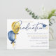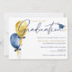 Convite para graduação com balões de aquarela e boné lindos. Fácil de personalizar com seus detalhes.