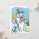 Fácil de personalizar o Convite de festas de Natal. Ilustração de safra design de Natal Feliz com adoráveis criaturas de cartoons florestais construindo um boneco de neve no inverno. O boneco de neve está segurando uma vassoura, vestindo um cachecol e tem um chapéu alto. Um esquilo está adicionando um pedaço de carvão para sua boca, um gambá está adicionando mais neve ao seu corpo, um coelho está rolando uma bola de neve enquanto um pássaro vermelho se senta sobre a borda de seu chapéu.