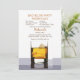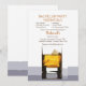 Convite de um homem para celebrar o aniversário, aprovação no exame da Ordem dos Advogados, despedida de solteiro e mais. O cartão apresenta um copo com gelo e bebida alcoólica.