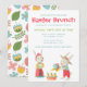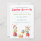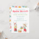 Este design de feriado apresenta um coelhinho fofo regando as cenouras do seu jardim com uma coelha segurando um ovo de Páscoa. Personalize o texto nas caixas de texto para seus convites personalizados para o Brunch de Páscoa.