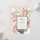 Este belo convite de casamento floral de buquê primavera apresenta um grande buquê cor-de-água de tulipa rosa. Todos os detalhes do casamento estão em verde-oliva com uma fronteira verde-oliva. O fundo tem um fundo rosa pincelado. Você pode personalizar este convite de casamento com todos os seus detalhes importantes na frente clicando em "personalizar esta modelo. Este convite coordena-se com os outros produtos da Coleção de Casamentos de Buquês de Aquarela Primavera.