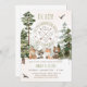Este Convite para Chás de fraldas de Camping de Animais da Floresta mostra um grupo de criaturas pequenas da Woodland, incluindo um ursinho bebê, guaxinim, raposa e camponesa, e estão cercados por uma bela floresta. Este Pacote de Convite para Evento e Chá de fraldas de Chá de fraldas está certo de que completa qualquer chá de fraldas, aspersão para bebês, brunch para bebês ou revelação de gênero! Ao usar o software Zazzle fácil de usar (sem download necessário) no seu navegador, você simplesmente compra e personaliza tudo no mesmo lugar. É tão fácil assim!