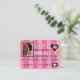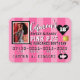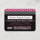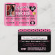 Estilo de Cartão de Crédito VIP de PINK Doce e Sassy, Excelente de Convites para Aniversário feminino ou Partido Pajama/Slumber. Listras cor-de-rosa na frente do convite com coração negro de tamanho excessivo mostrando a era personalizável do convidado de honra. Traseira: fundo de bolinhas cor-de-rosa, branco e preto na parte superior traseira da área inferior do convite com detalhes de evento em rosa. ©Miss Sassy Party Designs