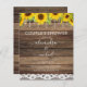 Budget Rustic Sunflower Farmhouse String Lights Lace Wedding Chá Invtions on Wood background - inclui bela e elegante tipografia com moderna Country Fazenda House Sparkle para a celebração especial do Dia do Casamento.