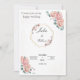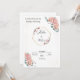 Um belo e elegante convite de casamento com rosas rosa pinceladas e folhas verdes de eucalipto. Um delicado quadro geométrico do ouro envolve o espaço do vazio para os detalhes do evento. Perfeito para um casamento chic, moderno e romântico."