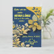 Convite de casamento azul com flores amarelas