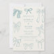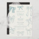 Vintage e coquete carta de convite de casamento com ilustração desenhada à mão de arcos azuis.
