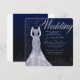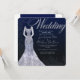 Vestido branco elegante convite para casamento, em fundo azul escuro