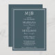 Faça um orçamento moderno, com as linhas azuis, convites de casamento minimalistas com modelos com iniciais no topo para você personalizar.