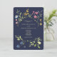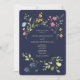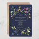 Este encantador convite de casamento azul de marinho de flor silvestre combina a elegância do marinho profundo com a beleza caprichosa das delicadas flores silvestres. Apresentando ilustrações florais vibrantes em rosa, amarelo e azul, ele cria um impressionante contraste em relação ao fundo escuro. O verso oferece um toque sutil e romântico com um monograma personalizado num pano de fundo macio e ouro. Perfeito para primavera, verão, ou casamentos outono iniciais, este convite combina o encanto clássico com um toque de romance inspirado na natureza.