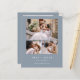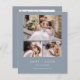 Imobilizante Elegante 4 Foto Dusty Blue Collage Convite Minimalista De Casamento. Os cartões de convite para o casamento contêm uma tipografia moderna que é elegante, simples e moderna para usar depois de você celebrar o dia de casamento simples e minimalista.