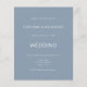 O Orçamento Dusty Azul, Moderno e Simples Convite De Casamento. A cor e o tipo da fonte podem ser alterados através do menu de edição. Você também pode alterar as cores do texto e do plano de fundo em ambos os lados, se desejar. Um valor para o alternativo menor de 4,5 x 5,6 polegadas é usado como padrão para a opção de semigloscópio, que é recomendada para convites e é de espessura semelhante a um cartão postal. A opção satin é muito mais fina.