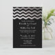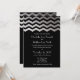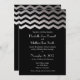 O design chic e ousado zag chevron zag com letra de estilo parisiense cumprimentará o seu tema de casamento preto e prateado, ao mesmo tempo que lhe permitirá personalizar este convite bilíngue unilateral de casamento para corresponder à herança das suas famílias mescladas (o inglês e o espanhol demonstraram, mas podem acolher todas as línguas de fontes Zazzle, incluindo o francês, o alemão, o filipino, o português e o italiano). Excelente para qualquer deco de arte, moda ou simplesmente um elegante casamento de gravata negra. Personalize a cor, a fonte e o idioma do plano de fundo para fazer disso um convite personalizado. Não precisa de convites bilíngues? Limpe as costas e está tudo pronto!