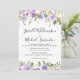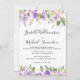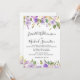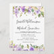 Design floral russo apresenta lindas rosas roxas e brancas cremosas. A design de aquarela também inclui uma variedade de verde, folhas, galhos e vinhas para lhe dar uma vibração moderna e arejada. Este item faz parte da Coleção de Casamentos Botânicos Florais Roxos Rústicos.