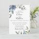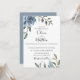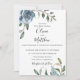 Flores aquarelas em azul poeirento com ramos botânicos, convite para casamento. Personalizar texto, estilo de fonte, cor e tamanho.