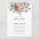Estes convites de casamento apresentam rosas empoeirados de cor d'água com folhagem de folha de eucalipto. Personalize-os com o seu texto. A suíte de casamento e os produtos de recepção também estão disponíveis.