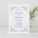 Defina o tom para o seu dia especial com este convite botânico belamente minimalista para o casamento, com folhas azuis do estilo aquoso e fontes clássicas de serifa. O layout limpo e refinado o torna ideal para casamentos elegantes de jardins, cerimônias ao ar livre ou celebrações inspiradas na natureza. Totalmente personalizável com nomes, data, local e hora — este design eterno combina simplicidade com sofisticação para casais que apreciam beleza natural e charme sutil.