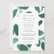 Os convites de casamento botânico a cores aquáticas elegantes mostram seus detalhes de casamento em caracteres clássicos, emoldurados por folhas de cor d'água em tons de esmeralda e verde florestal.
