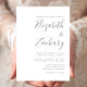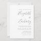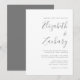 Este simples convite de casamento moderno mostra texto de cinza em um fundo branco. Adicione os nomes da noiva e do noivo na caligrafia de escrita manual do na moda e os detalhes na fonte sans serif. O reverso é uma sombra correspondente de cinzas sólidas.