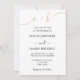 Convite para Casamento Branco de Script Dourado Monograma. Personalize esses convites de casamento brancos elegantes com as iniciais do monograma da noiva e do noivo e os detalhes do casamento. A frente do convite está no estilo simples e elegante com script de tipografia dourada para as iniciais do monograma. A parte de trás do cartão está estilizada em branco clássico.