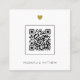 Possivelmente a forma mais econômica de enviar convites para casamento a amigos e familiares. Esta design minimalista usa cartões de visitas quadrados. Na frente, você adiciona o código QR do seu site de casamento. Você precisará fazer upload disso aqui para substituir o exemplo mostrado. Você pode obter o seu código QR gratuitamente on-line ou entrar em contato com o provedor do site. Então você adicionará seus primeiros nomes. Ao contrário, você adicionará uma mensagem pessoal e explicará aos seus convidados o que eles precisam fazer. Diga aos seus convidados para digitalizar o código e dar ao pessoas o URL do seu site de casamento ou o endereço do site para aqueles que não querem digitalizar o código. Este convite economiza dinheiro porque você não precisará enviar cartões RSVP. Esteja ciente de que estes são do tamanho de um cartão de visita, não do tamanho de um convite padrão.