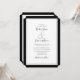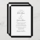 Este design apresenta os nomes da noiva e do noivo como o foco principal do design com uma borda branca, cinza e preta. Nomes personalizados usando tipografia de fontes de script criam uma fusão perfeita de moderno e elegância. Um simples design de casamento minimalista com monograma moderno, preto, branco e cinza. Também estão disponíveis itens de papelaria de casamento e outros formatos de convite de casamento.