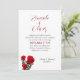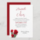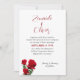 Simples convite de casamento rosa vermelha com nomes no topo. Três rosa vermelha no canto inferior são o único white paper simples e comum sobre design, com opções de upgrade. Cada caule de rosa tem uma floração parcialmente aberta, com verde. Os primeiros nomes da noiva e do noivo estão em um script grande e manuscrito na parte superior da carta. O texto do convite é preto, impresso com data de casamento em vermelho. Um modelo para a recepção de informações está no fundo. O reverso é vermelho escuro sólido. Uma design romântica e bonita para o casal moderno no amor. Esta design trabalha para uma grande celebração elegante ou para um pequeno casamento no quintal. Escolha um documento especial para realmente fazer este convite atordoante.