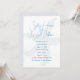 Moderno e simples convite de casamento com um tema do mar. Livro branco com texto azul marinho. Um script grande é usado para os nomes da noiva e noiva no topo do papel de 5 x 7 polegadas com uma imagem de fundo de estrelas grandes/estrelas marinhas. Todo o texto da cerimônia é adicionado no formulário de parágrafo para personalizar facilmente o seu evento. O reverso é azul-cinza pálido e sólido. Além disso, faça o download para compartilhar digitalmente, se preferir.