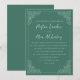 Traga a elegância do eterno para a sua celebração de casamento com este sábio convite verde, com florescimento intrincado de canto branco e uma combinação refinada de roteiro e fontes serif. O fundo verde suave oferece um tom fresco e úmido que é romântico e moderno — perfeito para primavera, verão ou casamentos ao ar livre. Os nomes a seguir no script manuscrito adicionam um toque pessoal, enquanto o tipo de serif tradicional garante uma leitura fácil. Uma escolha versátil que combina lindamente com temas de casamento rústicos, boho, jardim ou minimalistas.