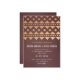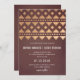 Este convite para o casamento ou evento apresenta um padrão de estilo Aztec, em forma de folha de bronze, com fácil personalização da tipografia em um layout simples e limpo, tudo contra um fundo vermelho de vinho profundo, sutilmente texturizado. Personalize este convite mudando a cor de fundo de acordo com as suas necessidades e crie um convite de evento único com o momento em que o sudoeste de Boho é talhado.