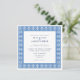 Um convite de casamento elegante com uma estrutura chave grega em cores legal Egeu/Mediterrâneo. Perfeito para casamentos com temas do mar, oceano, lago ou praia. Se você precisar de alterações no design, como cor, texto ou fonte; entre em contato conosco em seamistmail@gmail.com. Adoramos fazer parte de suas memórias felizes.