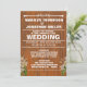 Fundo de Madeira Marrom texturizada com Letras Brancas Negrito e flores brancas. Adicione seus detalhes de casamento para um convite de casamento gentil.