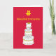 Um bolo de noiva multicamadas decorado em flores e espirais de gelo em ouro. O bolo está contra um fundo vermelho profundo e, juntamente com o símbolo chinês de dupla felicidade, diz "Convite de Casamento".