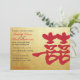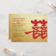Este "Convite para Casamento Chinês de Felicidade Dupla" apresenta um fundo dourado e os personagens Chineses que representam "felicidade dupla".