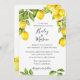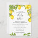 Limões de aquarela, folhas e flores, convite para casamento. Personalizar estilo, cor e tamanho da fonte.