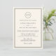 Um elegante e fino crachá de duas bordas e monogramas circulares esboçado em preto nítido fornece um belo contraste contra o tom de marfim creme rico destes convites de casamento clássicos de naves. Um eterno, uma escolha formal para na moda e casamentos elegantes.