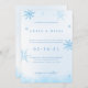 Ponha o tom para o seu casamento no inverno mágico com este elegante convite para flocos de neve em azul suave de gelo. Apresentando flocos de neve de cor d'água gelada e tipografia serif clássica, esta design é perfeita para casamentos de montanhas ou celebrações de terras maravilhosas de inverno. Facilmente editável com seus detalhes.