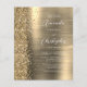A borda esquerda deste elegante convite de casamento moderno apresenta uma borda falsa de ouro. O texto personalizável combina manuscrito branco, fontes em copperplate e itálico em um fundo de metal esfregado em falso ouro. O lado inverso apresenta um design de metal embebido e brilhante correspondente.