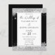 Convites para Casamentos no inverno de brilho preto e prateado. A fonte do script é realçada com a fonte de nome de serif de leitura fácil. Fácil de ajustar para as suas necessidades de casamento.