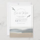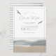 Convide os convidados para a sua celebração à beira-mar com este convite para o casamento, com uma cena ilustrada de praia adornada com duas gaivotas graciosas. As costas exibem listras náuticas clássicas em tons de cinza azulada, evocando a beleza tranquila do romance costeiro.