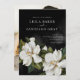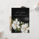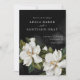 Um Convite Elegante para Casamentos, desenhado com uma ilustração da Magnólia Branca, sobre fundo preto. A parte traseira desta placa pode ser personalizada com sua foto favorita orientada a retratos. Correspondência de itens em nossa loja Design do Partido Cava