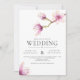 Um convite de casamento incrível para casais que buscam um visual moderno limpo, com galhos magnólios cor-de-água rosa e creme em um fundo branco nítido e fontes modernas de cinza escura. O suporte está em cinzas sólidas, mas isso pode ser removido.