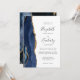 A borda esquerda deste elegante convite de casamento moderno apresenta um marinho azul de aquarela agata borda aparada com falso brilho dourado. O texto personalizável combina manuscrito, copperplate e fontes itálicas em cinzas de carvão em um fundo branco. O verso apresenta um design azul-marinho e um agate-ouro correspondentes.