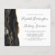 A borda esquerda deste elegante convite de casamento moderno apresenta uma coloração aquosa preta, borda agitada, aparada com falso brilho dourado. O texto personalizável combina a escrita manual de cinzas de carvão, as fontes em copperplate e itálico em um fundo branco. A parte de trás é sólida e escura.