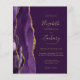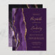 A borda esquerda deste elegante convite de casamento moderno apresenta uma cor d'água roxa, borda agitada, aparada com falso brilho dourado. O texto personalizável combina manuscritos dourados, copperplate e fontes itálicas em um fundo roxo profundo. O verso apresenta um design de agate roxo e dourado correspondente.