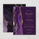 A borda esquerda deste elegante convite de casamento moderno apresenta uma cor d'água roxa, borda agitada, aparada com falso brilho dourado. O texto personalizável combina manuscritos dourados, copperplate e fontes itálicas em um fundo roxo profundo. O verso apresenta um design de agate roxo e dourado correspondente.