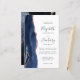 A borda esquerda deste elegante convite de casamento moderno apresenta um marinho azul de aquarela agate bordado com falso brilho rosa de ouro. O texto personalizável combina manuscrito, copperplate e fontes itálicas em cinzas de carvão em um fundo branco. O verso apresenta um design marinho de agate azul e rosa dourado correspondente.
