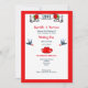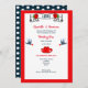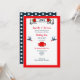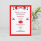 Um divertido e colorido convite vermelho, estilo Rockabilly, estilo vermelho, branco e azul marinho, da década de 1950, com rosas, corações, andorinhas e gráficos especiais de bolinhas. Ideal para casais que amam os estilos antigos e procuram algo um pouco diferente.