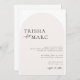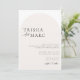 Este convite de casamento moderno tem curvas e cores neutras para invocar elegância e beleza. Com o seu guião escrito por chic e um rico fundo de arco creme, é certo que se destaca pela multidão e que useia os seus convidados. Observe que há dois estilos diferentes de placas RSVP que correspondem a este design. A placa RSVP circular só será ajustado em um envelope com um convite de 5,5" X 7,5".