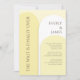 Convite para Casamento de Arcos Modernos | Design Minimalista Amarelo Suave Pastel Celebre seu grande dia com este convite de casamento amarelo pastel moderno com arcos elegantes sobrepostos em tons neutros suaves. Ideal para temas de casamento minimalistas, desérticos, boho ou monocromáticos, este convite romântico oferece um novo e na moda que destaca seus detalhes de casamento com tipografia limpa e personalizável. Esta design inclui a frase editável "A Espera Finalmente Acabou" — perfeita para o casando casal após uma celebração há muito aguardada. Todas as palavras, fontes e cores podem ser personalizadas para ajustado da estética de casamento. Recursos: design moderno de trincas triplas em amarelo pastel amarelo macio Cristalino (alterável para preto ou sua cor preferida) Perfeito para temas de casamento de primavera, verão ou neutros Facilmente personalizado com seus nomes, data e local Cartões RSVP Correspondentes, inserções detalhadas e dia de cartazes estão disponíveis no mesmo conjunto minimalista.